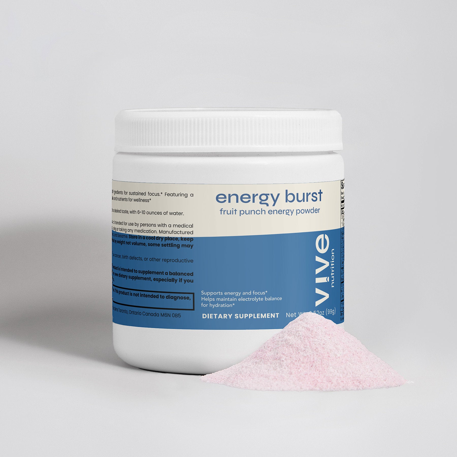 Infused with essential electrolytes and nutrients, our Energy Powder is intended to support hydration and overall wellness, complementing physical and mental activities as part of a health-conscious diet.*